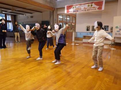 ALTの先生と楽しく活動しました。ハロウィン遊びをしながら英語に親しみます。