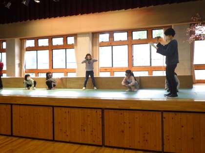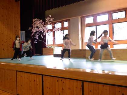 1・2年劇。みんなで振付を覚えます。