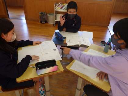 5・6年生国語。5年生と6年生に分かれて、テーマを決め題材を決めます。