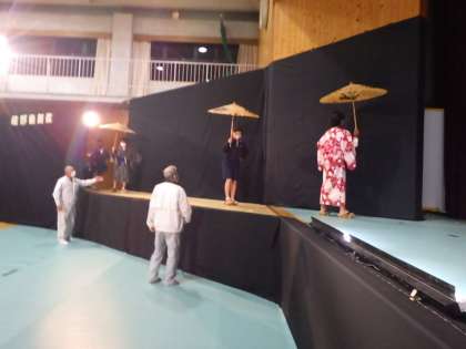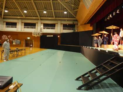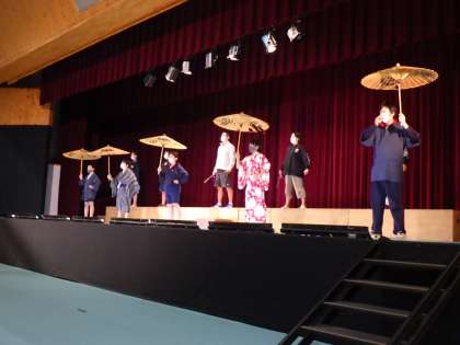 歌舞伎練習。中学生や保護者の方も加わり、練習に熱が入ります。