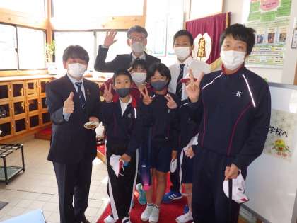 下の写真は、学校で作っているしょうゆを味見していただき、記念写真を撮りました。
