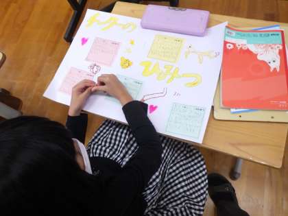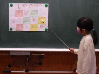 2年生国語。自分たちで調べた動物を、手本に沿ってまとめ、発表をします。