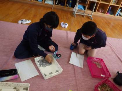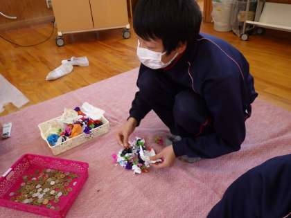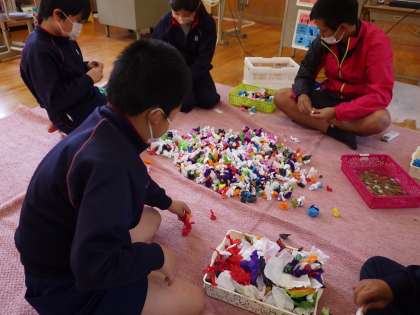5・6年生。先週行われた萩野子供歌舞伎で、参観者の方から「おひねり」をいただきます。それを数える作業です。金融機関にもっていけば一発で数えてもらえるのですが、まずはそのありがたみをかみしめながら数えます。