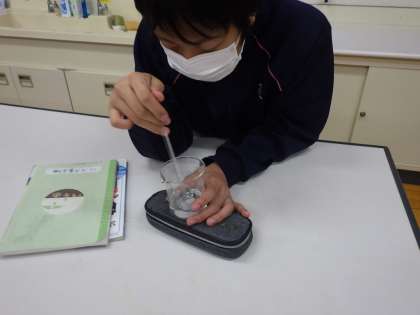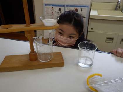 5・6年生理科。ものを溶かし、ろ過しています。