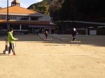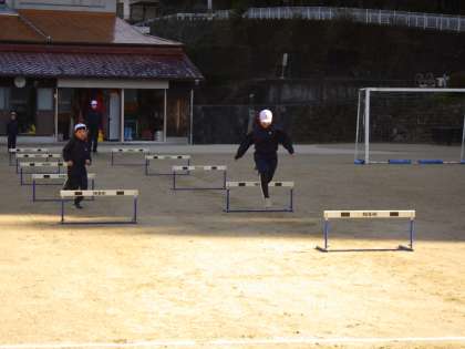 いずれも障害走。リズムよく跳びタイムを測っています。