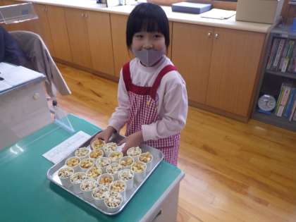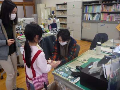 やまびこ学級。学校で採れたポップコーンを調理し、先生がたにふるまってくれました。