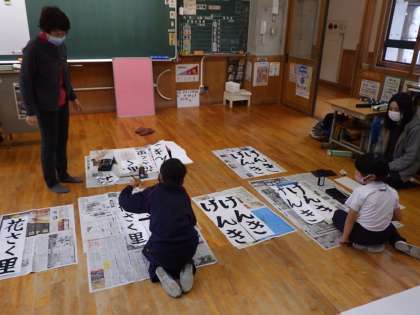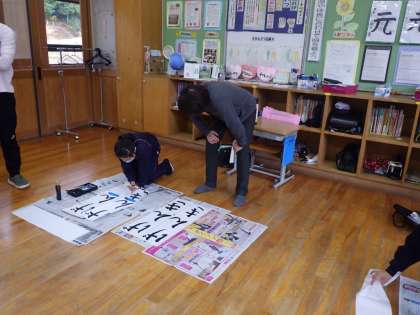 書き初めを一人一人丁寧に教えてくださいます。