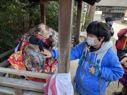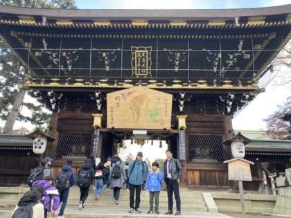 本日最初の見学は北野天満宮です。 なで牛をなで、おみくじを引きました。