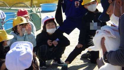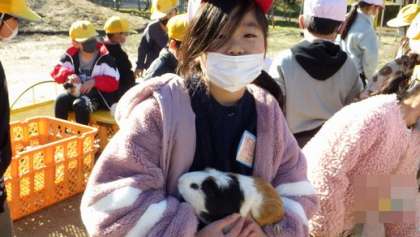 本校学区内を拠点としている「いちご動物園」がたくさんの動物を連れて来てくれます。子どもたちは動物と触れ合います。