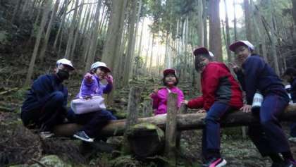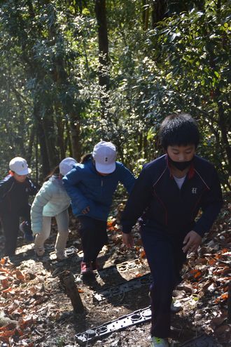 縦割り班ごとに登ります。リーダーがやさしく見守ってくれます。