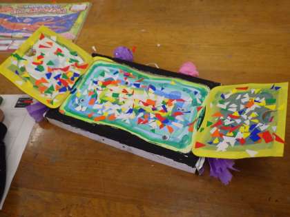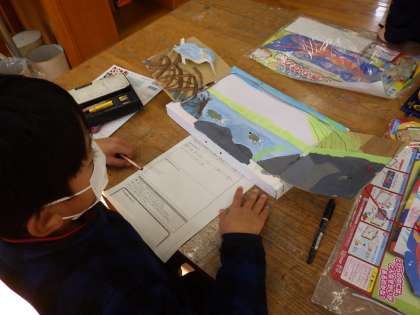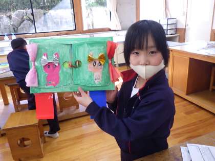 3・4年生図工。 扉の外側と内側でそれぞれ工夫して製作しています。