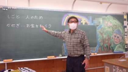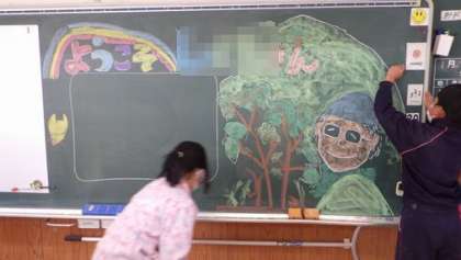 子どもたちは、先生を迎えるにあたり、自分たちで黒板にイラストをかいています。