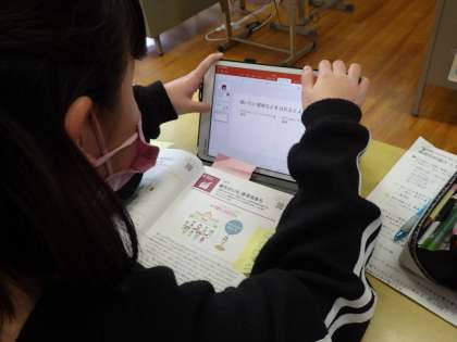 土曜日の公開授業に向けて、タブレットでプレゼンを作成しています。