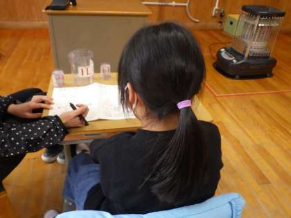 学力テストを受けた後、復習をします。