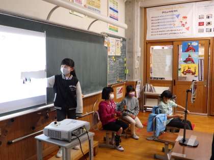 4人で協力して発表しています。