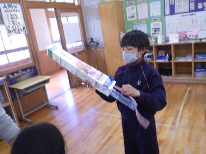 3・4年理科。 牛乳パックとタフロープを使って腕の筋肉の仕組みを学びます。