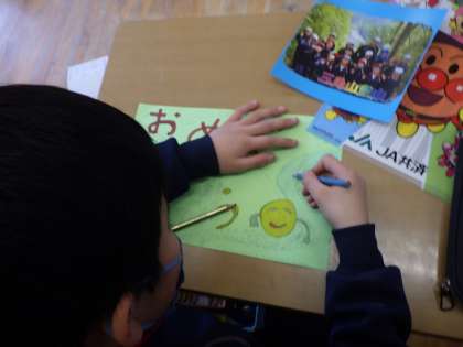 送る会に向けて、メッセージカードを心を込めて作っています。