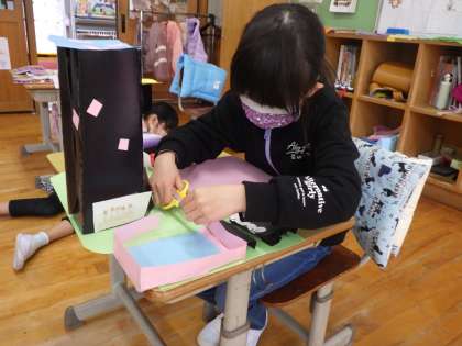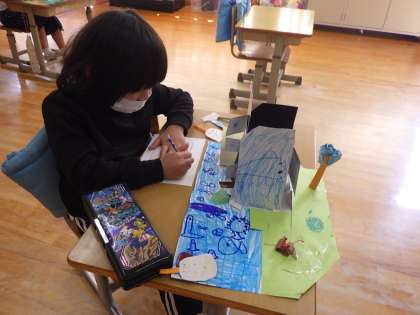 1・2年生図工。 先日作成していた作品の完成です。