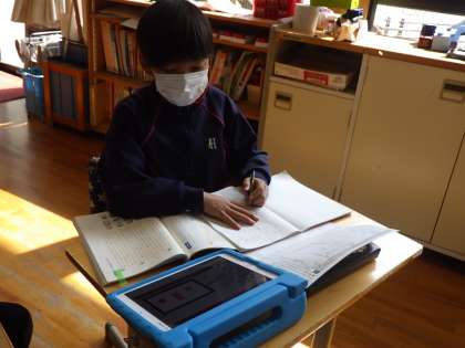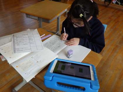 3・4年生国語。 タブレットで調べたデータをもとにまとめています。