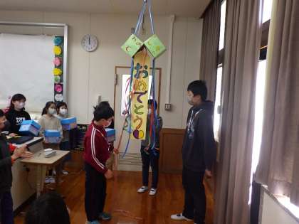 くす玉と在校生からのメッセージボックスのプレゼントです。