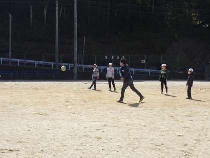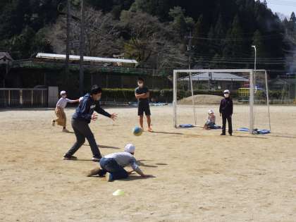 6年生を囲み、全校児童でドッジボールを楽しんでいました。