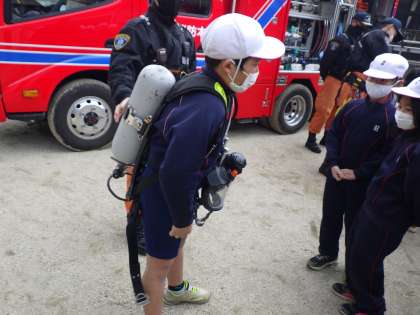子どもたちは興味津々で話を聞いたり、器具を触らせてもらったりしていました。
