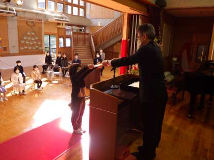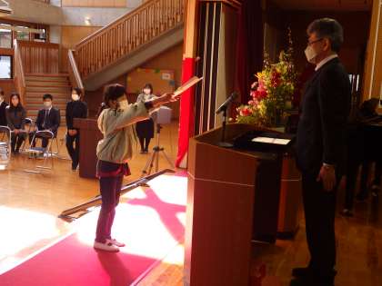 校長先生のお話の後、修了証の授与です。 1〜3年生です。