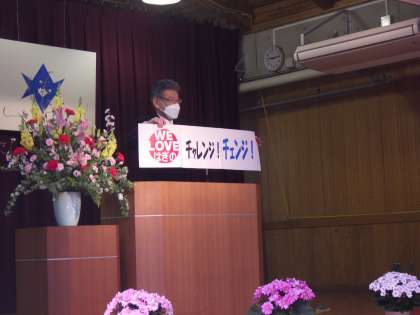 校長先生のお話です。今年の目標は「チャレンジ」にプラスして「チェンジ」です。