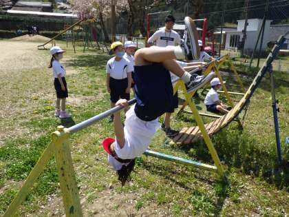 1・2年生体育。 鉄棒です。