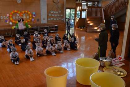 しょうゆの仕込み方を教えて下さるお二人からお話を聞きます。