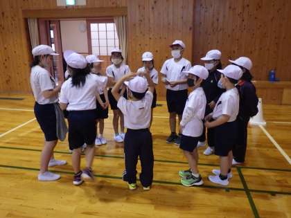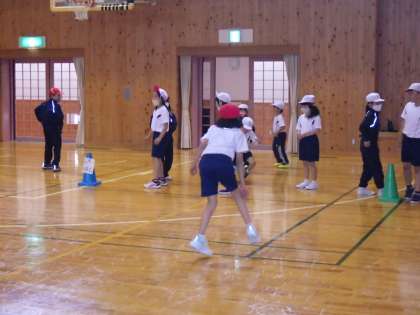 新入生歓迎会。 5・6年生企画運営です。 けいどろですね。