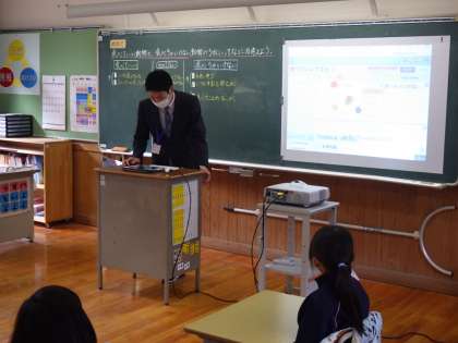 3・4年道徳。 自分の考えをタブレットで表します。 ICTの活用です。
