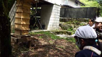 途中、養蜂をしている場所をしょうかいしてもらいました。