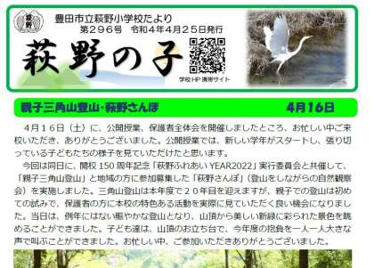 4月26日(火)学校だより「萩野の子」296号