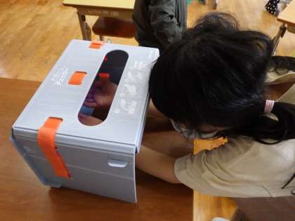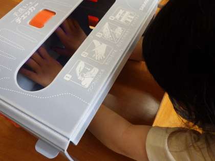 手洗いがきれいにできているか、手洗いチェッカーでたしかめます。