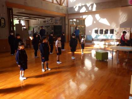 朝会の終わりに校歌を歌いました。久しぶりの校歌で、歌詞がばらばらでした。