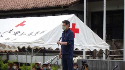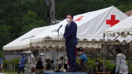 まずは開会行事。校長、区長さんのあいさつ、そして、市議会議員の鈴木章様から激励のお言葉をいただきました。