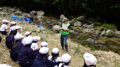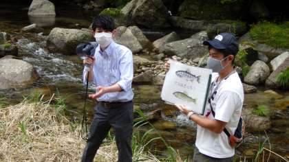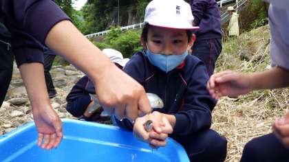 本学区に在住している巴川漁業協同組合の方が稚アユ放流事業を紹介してくださいました。