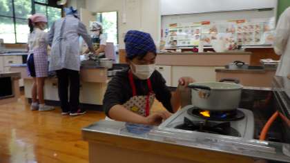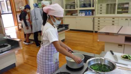 5・6年家庭科。 ほうれんそう、じゃがいも、きゃべつ、にんじん すべて「ゆで」ています。