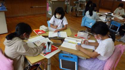 3・4年生国語。教科書教材「走れ」を場面絵と文章を照らし合わせながら読み取ります。