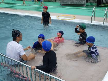 7月4日(月)雨の中のプール