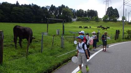 ウオークラリーは天候にも恵まれました。牛を見ています。