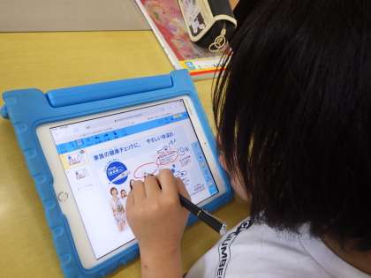 広告の違いについて、タブレットに配付された資料にメモをとります。