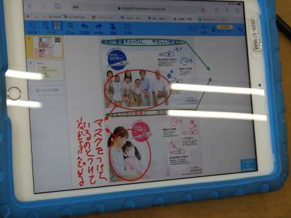 タブレット内にある、「Sky menu」でノートを共有し、グループ内の他の子のデータを自由に見ることができます。
