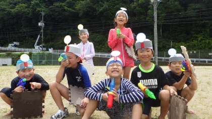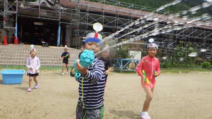 水鉄砲で遊びました。