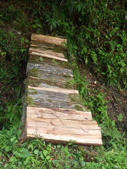 この川に親しむ会を実施するにあたり、夏休み中の出校日に保護者の方々で草刈りをしてくださいました。また、写真のように、朽ちかけていた橋を丁寧に修理してくださいました。