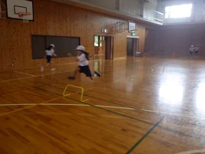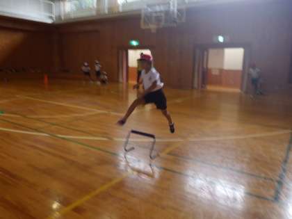 3・4年生体育。 ドリルハードルを使用しています。 リズムよくとんでいます。