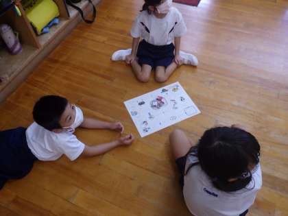 すごろくは1・2年生です。汗をいっぱいかいた状態でのすごろくです。