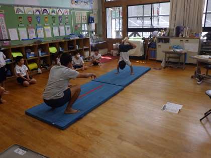 熱中症対策のため、教室内で行います。