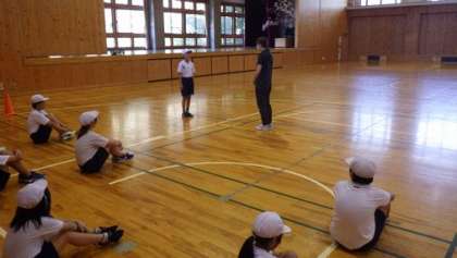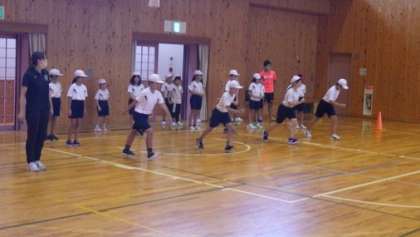 本校は少人数のため全校での教室でしたが、どの学年の子にもわかりやすく教えてくださいました。これで、みんな陸相選手です!